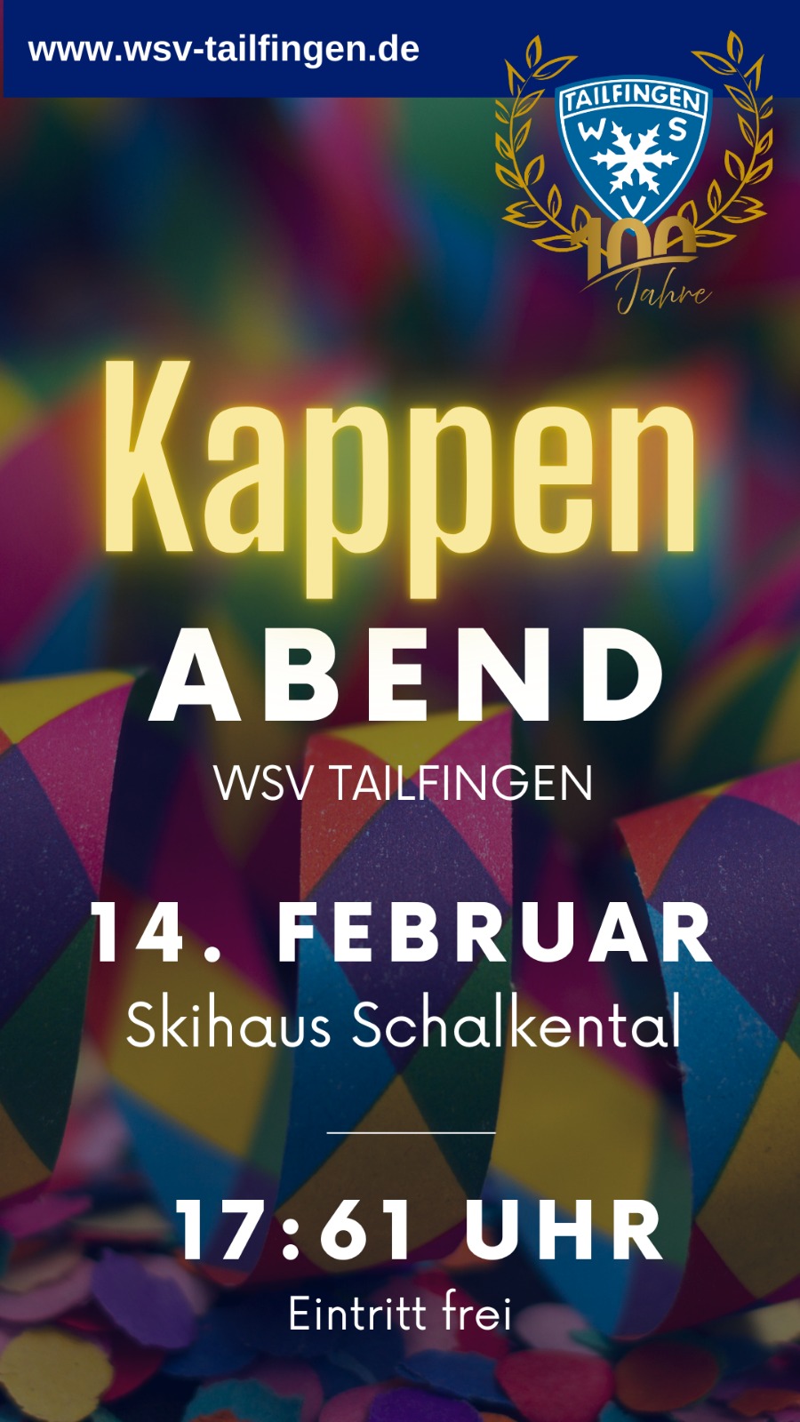 närrischer Kappenabend im WSV-Vereinsheim Skihaus Schalkental ab 17:61 Uhr.